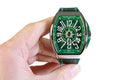 Step into the world of refined design with this stunning 44mm tonneau-shaped timepiece. With bold curves and contemporary dimensions (53.5 x 43.6 x 12.9mm), this piece makes a confident statement on the wrist. The vivid green dial 🌿 adds a modern, nautical-inspired touch, perfect for those who appreciate unique yet timeless style.