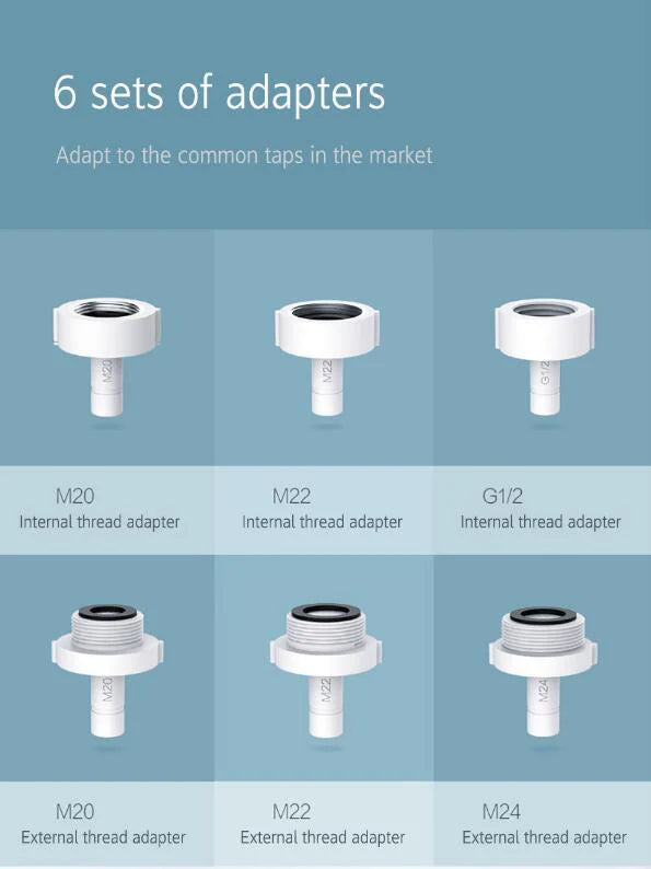 3、USB Charging: 6 sets of adapters can be adapted to any faucet. Using USB charging, the charging time is about 3 hours, which can provide up to 6 hours of battery life. When the battery is low, there will be a light reminder function.